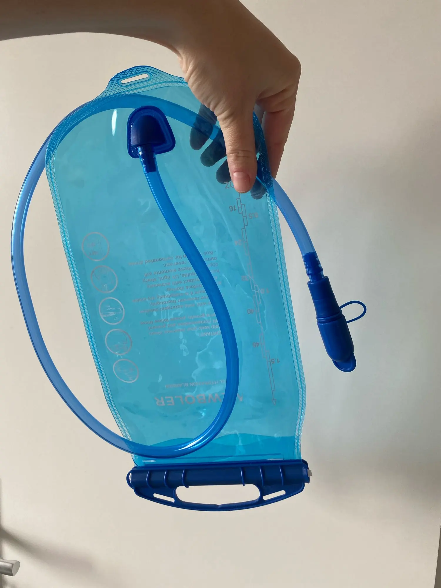 It has arrived safely and within the agreed timeframe. It looks great and fits perfectly in the backpack I have. The plastic seems to be of quality; at least it has an acceptable thickness. The opening at the top is easy to use. I have tried with a little water and it is completely sealed. The only downside seems to be that to drink, you need to press the spout against your teeth for the water to come out, which is a bit uncomfortable. It has a spring and seems too strong to me. Perhaps a looser fit would make it less uncomfortable.