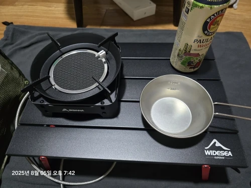 I am satisfied with the fast delivery. The product quality is excellent for its price. I took a picture of the iPhone 13 SE for rough size comparison when folded and unfolded. Please refer to this. It can be easily unfolded for use and the support stand is stable. Burner and Dyce Sierra Cup purchased together. Please refer to the photo showing the 500ml beer bottle placed on top. Suitable for solo use.