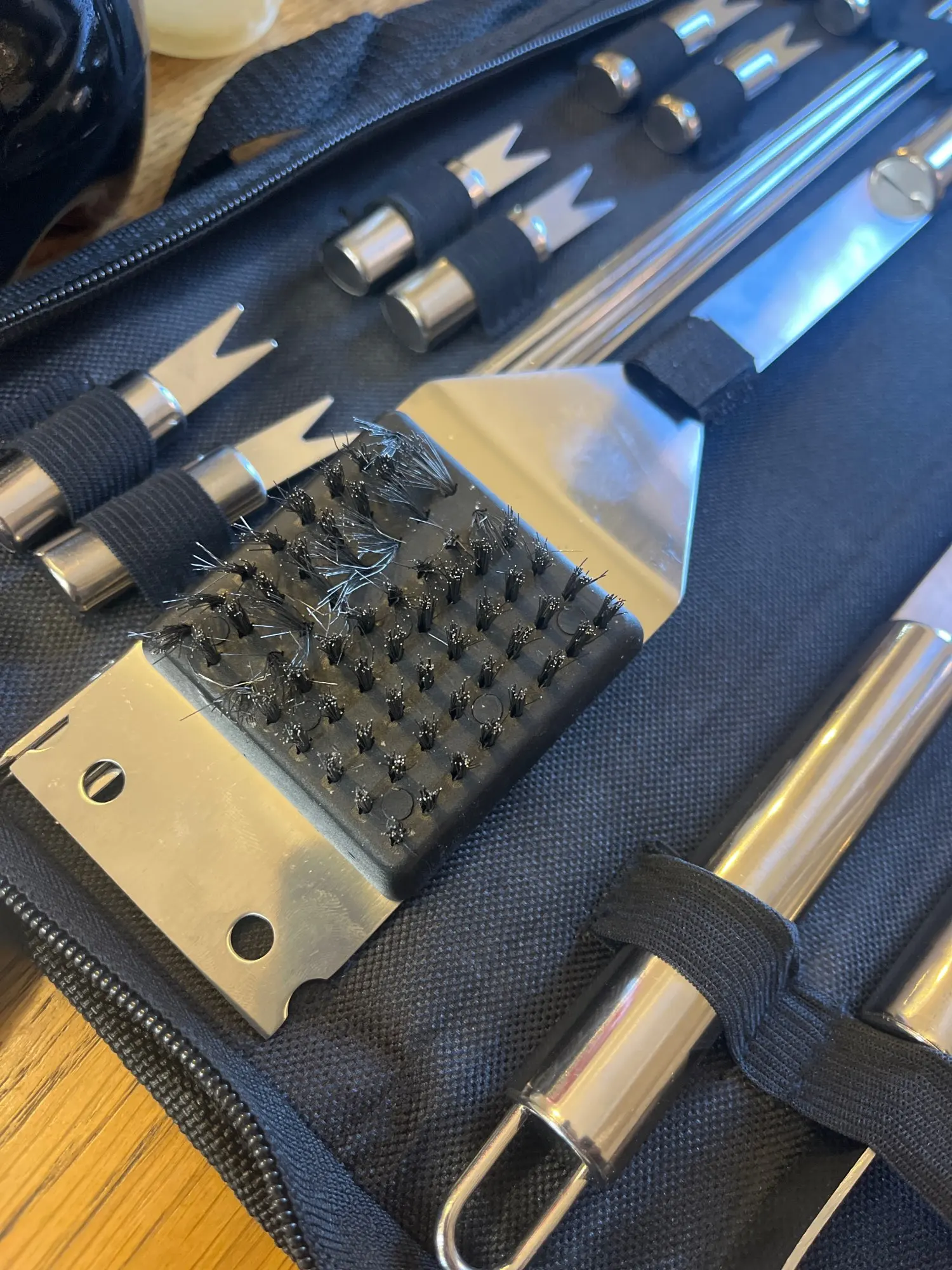 - Complete BBQ Kit – Includes spatula, tongs, fork, skewers, basting brush, and more.